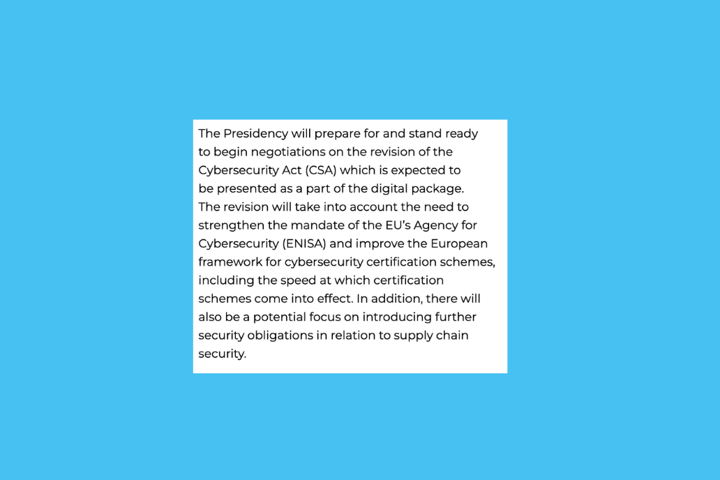 Lastly, the Danes state they will also “be ready” to begin negotiations on the revision of the Cybersecurity Act (CSA) which, among other things, could “introduce further security obligations in relation to supply chain security”.