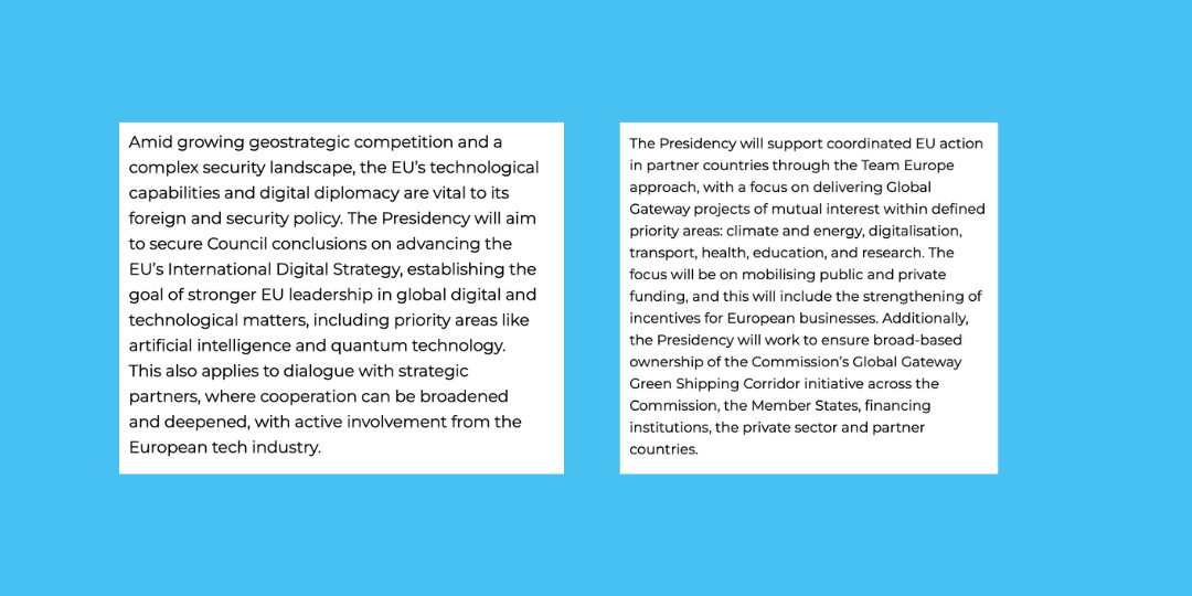 While the prospects for reforming the Global Gateway to strengthen European leadership in digital development remain murky, the Danes are expected to push this agenda forward as well.