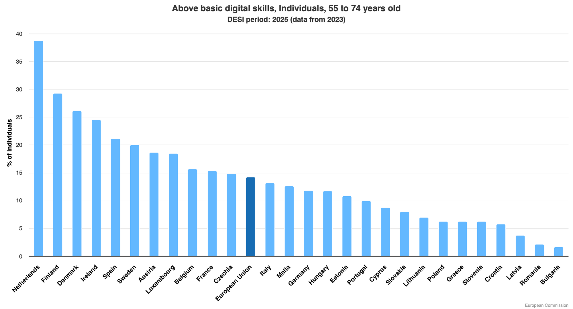 Improving above basic digital skills: Czechia, Hungary, Estonia and Finland lead