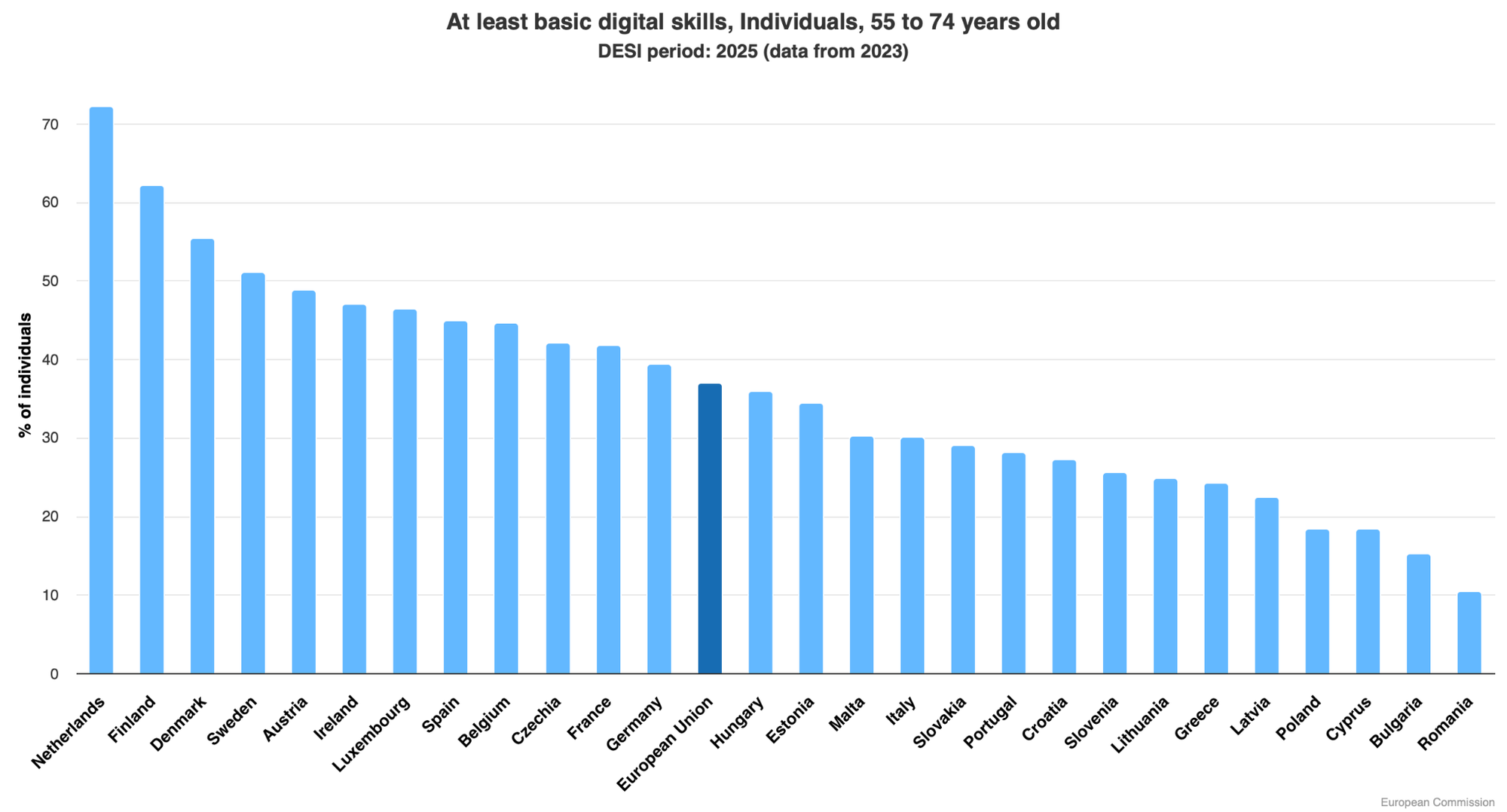 Belgium was the leader when it comes to improving basic skills of people aged 55-74 with +10,5%, Czechia - with 9,66%, Hungary - 9,3%, Estonia - 6,76%.